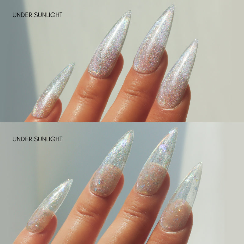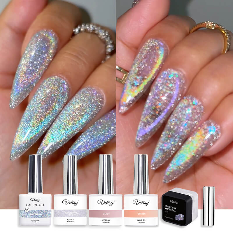 Get ready to create stunning, shiny holo glitter nail art with our new all-in-one nail product set! This set includes dazzling gels: rainbow cat eye gel, reflective amber gel with opal flakes, and reflective glitter gel that shines like diamonds. These glitter gels capture and reflect light beautifully, ensuring your nails look radiant from every angle. The rainbow cat’s eye effect adds a touch of glamour, and when paired with a stronger magnet in the set, you can achieve a flawless, dynamic cat-eye look easily. Perfect for DIY manicures at home or as a gift, this set will bring sparkle and beauty to anyone’s nails!