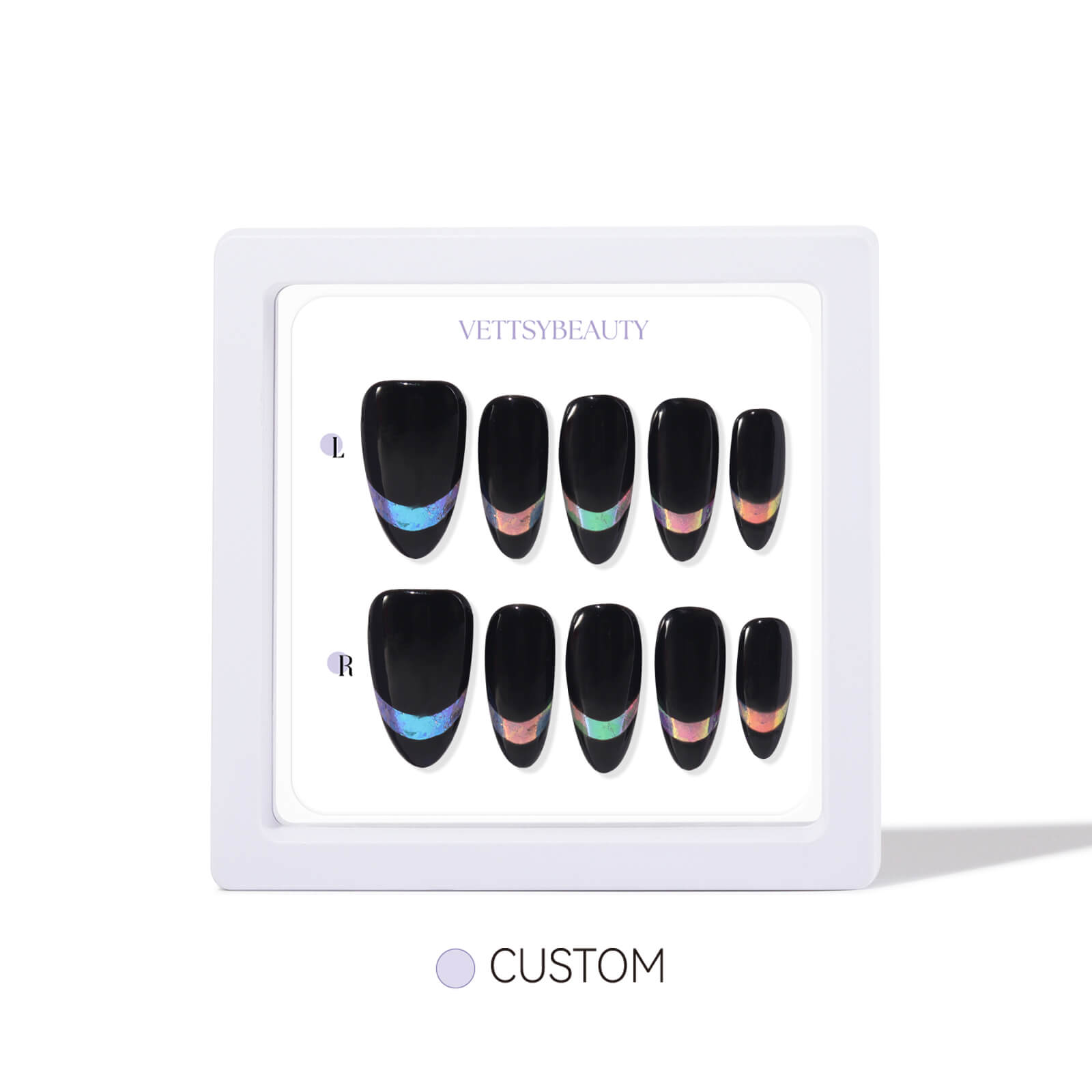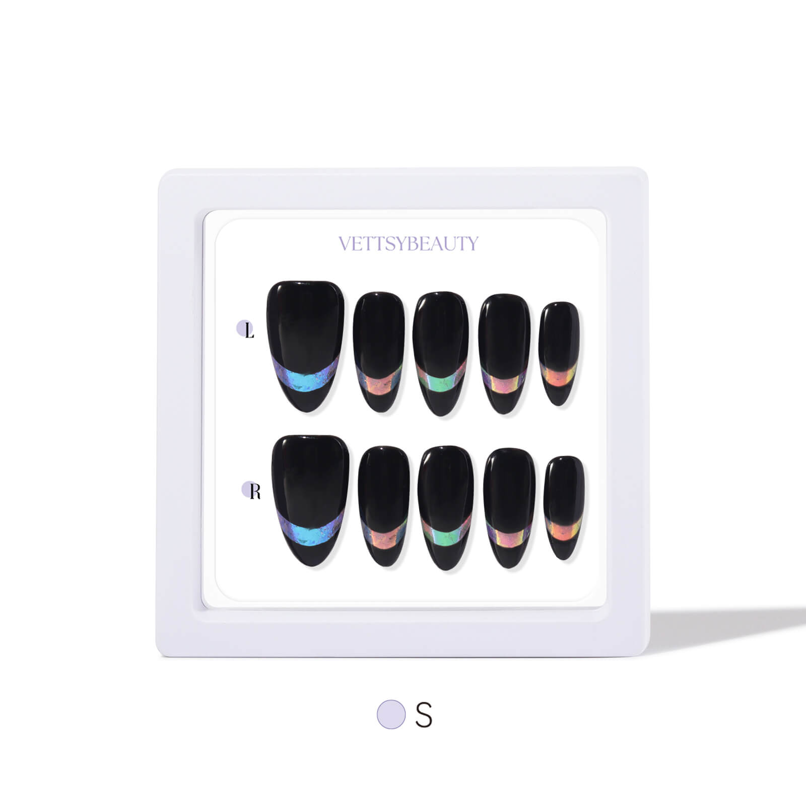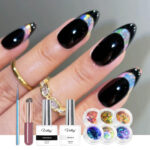Double Black French Tips Nails with opal glitters will make your nails eye-catching all the time, the perfect blend of elegance and sparkle for opal nails & French nail design lovers! This set combines a high-pigmented black base with vibrant neon opal glitter flakes, giving your nails a low-key yet captivating look. Perfect for creating unique double French tipped manicures in just minutes. The six shades of opal glitter in the set allow you to customize your ideal opal French nails for any occasion. If you mix opal glitter with cat eye gel, you will get a more dazzling and charming effect. Plus, our Hema-free gels ensure a safe and allergy-free experience!